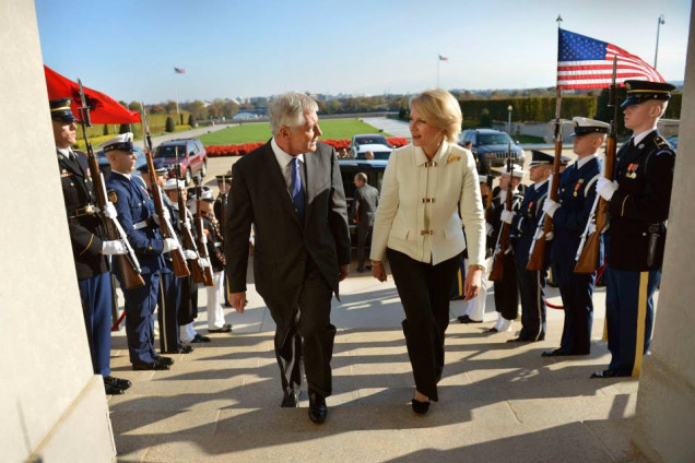 Në vijim të vizitës së saj ministrja e Mbrojtjes znj. Mimi Kodheli zhvilloi një takim zyrtar me sekretarin amerikan të Mbrojtjes z. Chuck Hagel. Ministrja Kodheli e njohu sekretarin Hagel me reformat e ndërmarra deri tani dhe me angazhimet e përbashkëta në kuadër të Aleancës. Gjatë takimit u bisedua për edukimin dhe trajnimin e ushtarakëve shqiptarë në sistemin arsimor ushtarak amerikan.