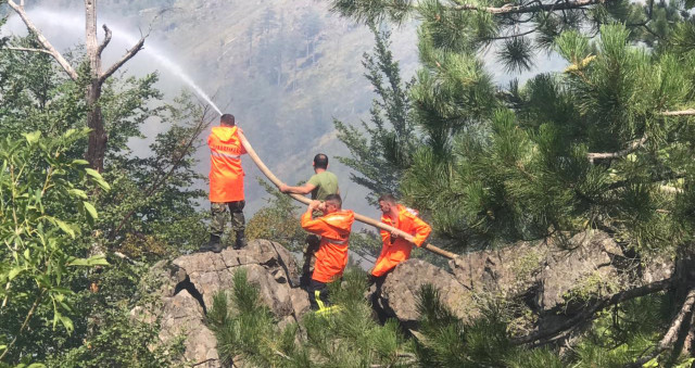 Punonjësit e zjarrfikëses dhe emergjencave civile po punojnë për të mos lejuar përhapjen e flakëve në një vatër zjarri në zonat e mbrojtura Parku Kombëtar Bredhi i Hotovës-Dangëlli, në fshatin Bejkollarë, në Gjirokastër.