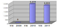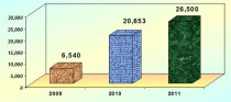 Ky grafik paraqet sasinë e municioneve të asgjësuara gjatë viteve 2009-2011. Siç duket sasia e përgjithshme është 53,693 ton municione të asgjësuara.