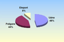 Në këtë grafik të dytë reflektohet sasia në përqindje e asgjësimeve për vitin 2011 respektivisht në uzina, poligone dhe nëpërmjet eksportit.