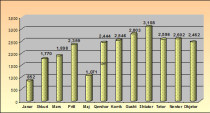 Ky grafik tregon sasinë e municioneve të asgjësuara sipas çdo muaji për vitin 2011. Sasia totale e municioneve të asgjësuar gjatë periudhës janar-dhjetor 2011 është 26,500 ton.